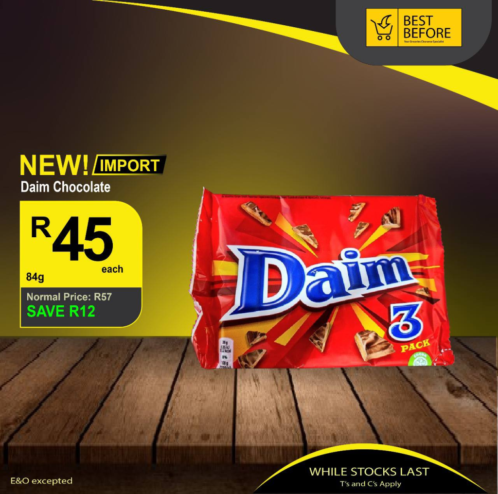 - Daim Chocolate (Imported) – Was R57, now only R45, save R12.