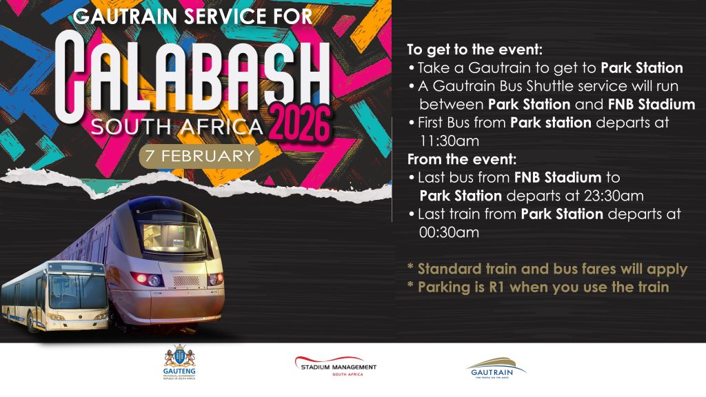 Hashtags: #CalabashSA26 #GautrainTransportPlug #VisitGauteng