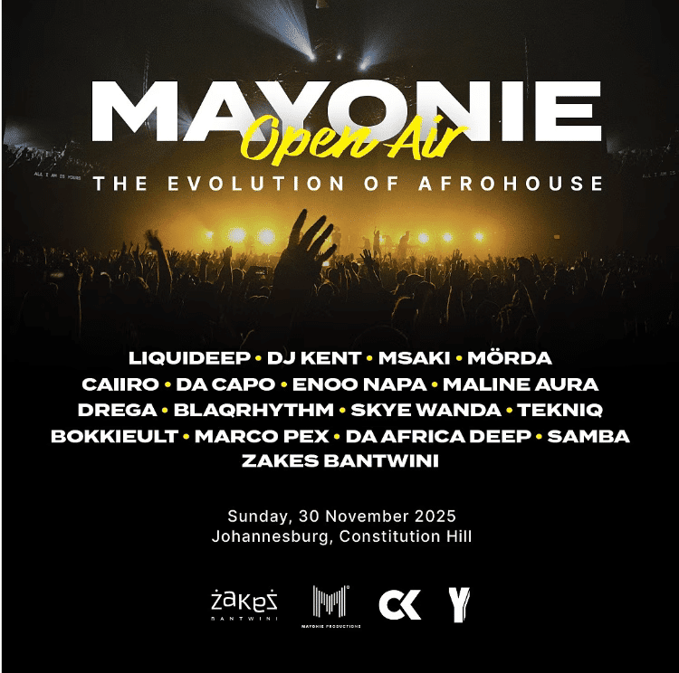 In association with Y, Zakes Bantwini presents Mayonie Open Air, an afro-house music experience celebrating the past, present, and future of soulful house. The festival will feature an eclectic lineup including Liquideep, DJ Kent, Mzaki, Mörda, and the full family of Mayonie artists. For anyone who grew up on warm basslines, Sunday-deep-house sessions, or the era-defining sound of the 2000s, this event promises a true homecoming.