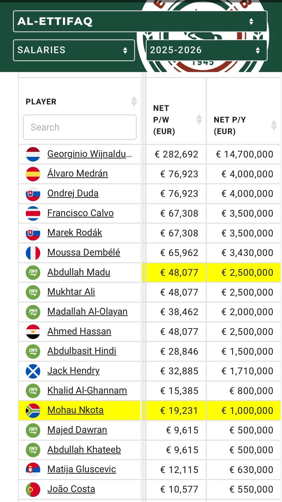According to salary-tracking platform Capology, Nkota now pockets €19,231 (approximately R300,000) weekly, which translates to over €1 million (R20 million) annually. The Kimberley-born attacker has already begun repaying the faith shown in him, registering a goal and two assists in just four outings for Al Ettifaq.