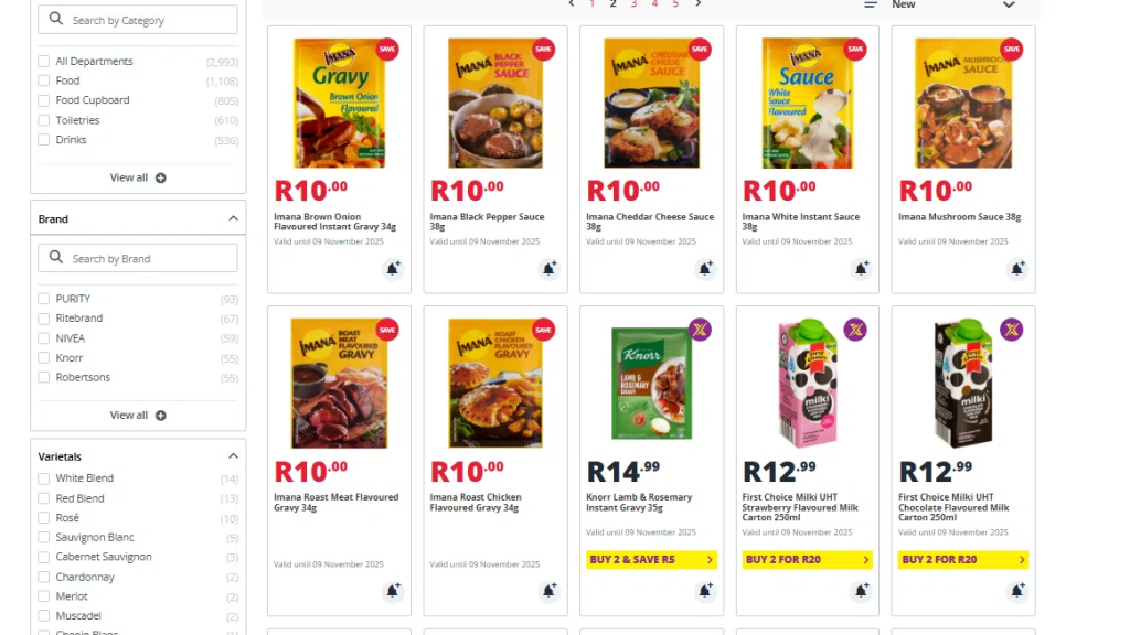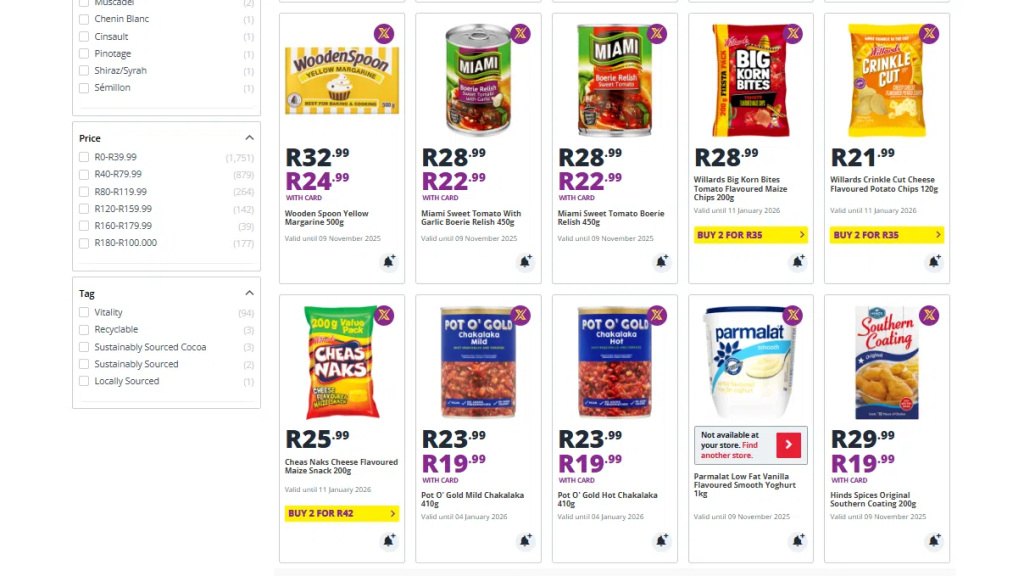 Multi-buy offers such as “4 for R100” or “Buy 2 for R55” provide excellent value. Stock up on essentials like tissue packs, sauces, or detergents.
