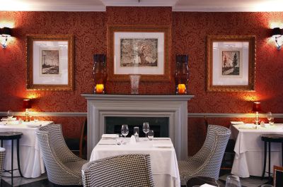 Lunch and dinner service accommodates business meals or celebrations in the restaurant or outdoors. Breakfast, lunch, and dinner extend to room service for hotel guests.