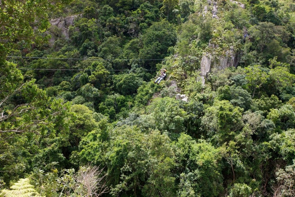• The Slides: These platforms are connected by 10 long steel cables (ziplines), with some slides stretching up to 140 metres and soaring 30 metres above the canopy floor and a winding mountain stream.