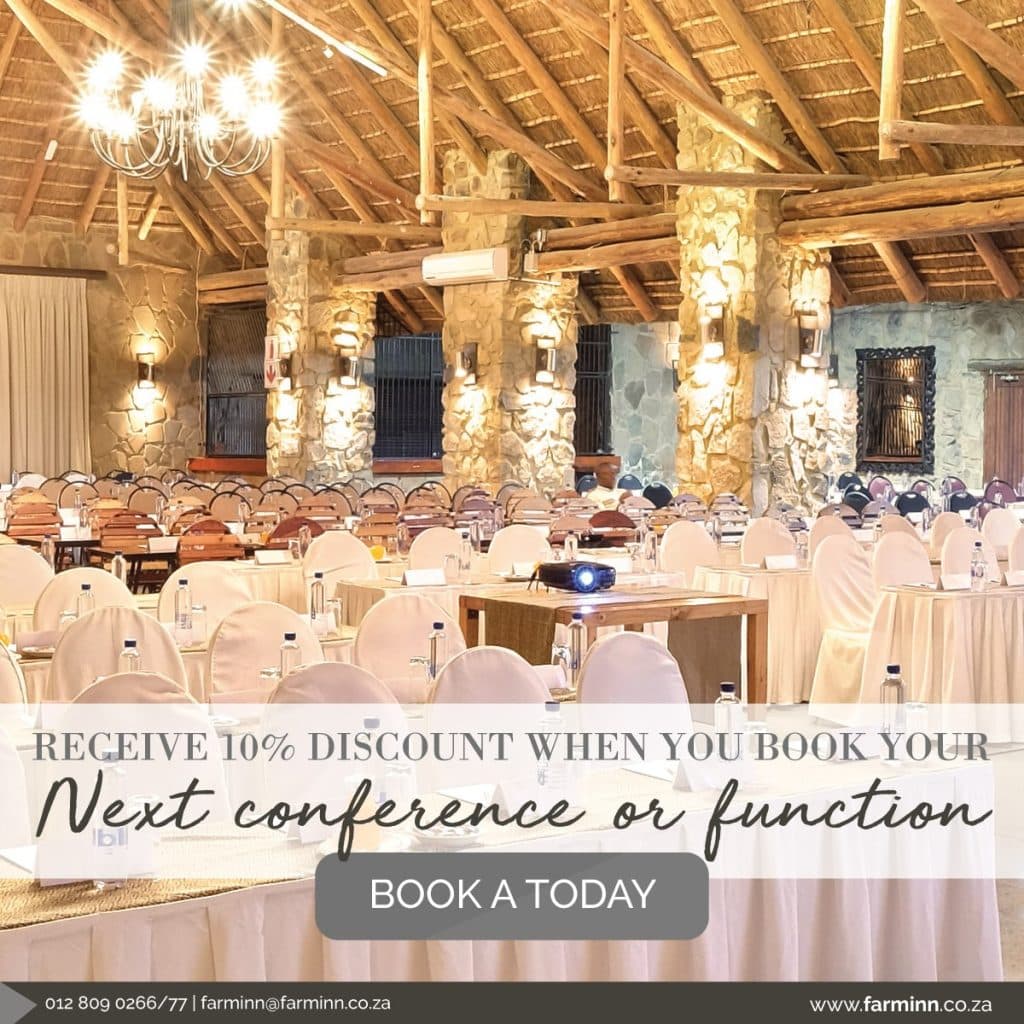 Located 20 minutes from Pretoria city center, The Farm Inn is a private country hotel that doubles as a wildlife sanctuary. With 83 guest rooms and 12 conference venues, it caters to conferences, weddings, and family getaways.