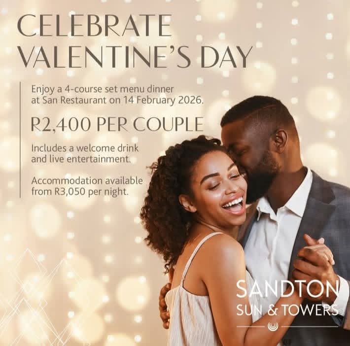 If you are looking to elevate your romantic celebrations this year, the Sandton Sun & Towers Valentine’s special offers an evening of unparalleled elegance in the heart of Africa’s richest square mile. Known for its world-class service and cosmopolitan flair, this iconic venue is the perfect setting for a 2026 “night to remember.” For R2,400 per couple, you and your partner can enjoy a curated culinary journey designed to celebrate your connection.