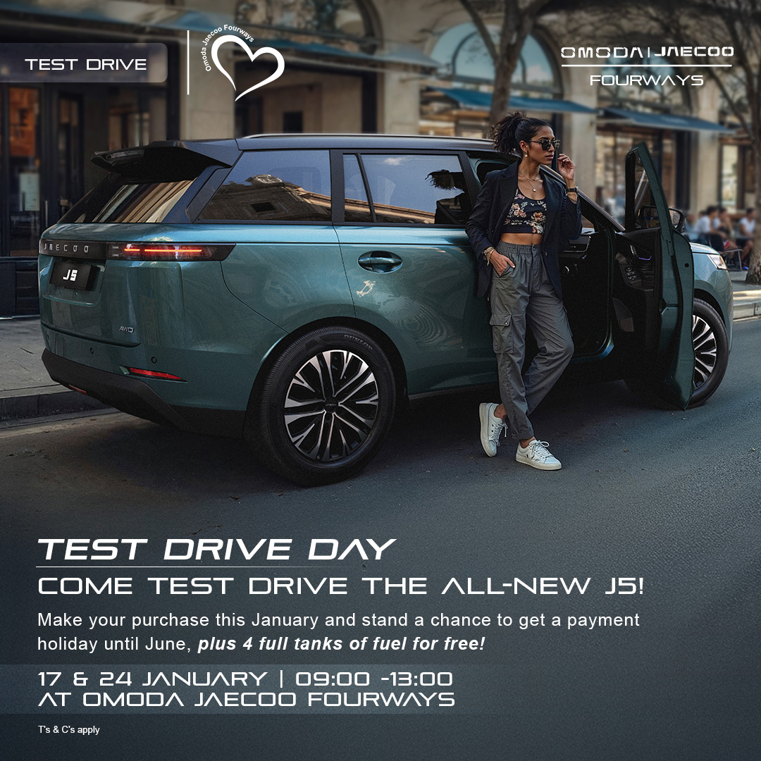 Hosted publicly by OMODA JAECOO Fourways, it allows hands-on test drives of the all-new compact JAECOO J5 SUV, positioned below the J7 with premium features in an accessible package.