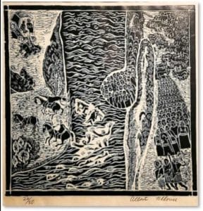 Artists such as Azaria Mbatha and John Muafangejo, both well-known Rorke’s Drift artists, as well as Tommy Motswai and Dirk Meerkotter, are featured, to name a few.