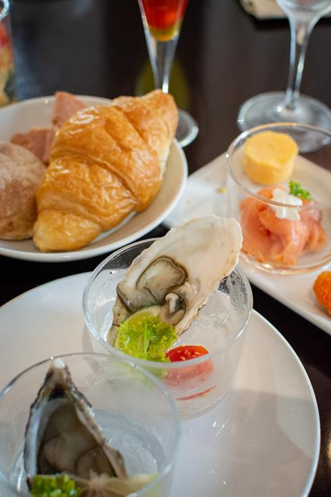 According to information provided by the restaurant, the brunch is offered between 10:00 and 12:00 each Sunday and follows a buffet-style format. The menu is positioned around classic breakfast items, with a limited selection of seafood and baked goods.