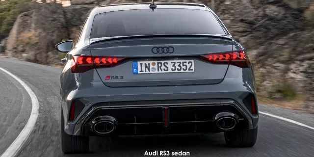 Audi has given the RS3 a fresh look with wider fenders, redesigned front and rear bumpers, a more aggressive rear diffuser, and larger exhaust outlets. A new lighting signature and cleaner grille design now without the RS badge complete the exterior tweaks.