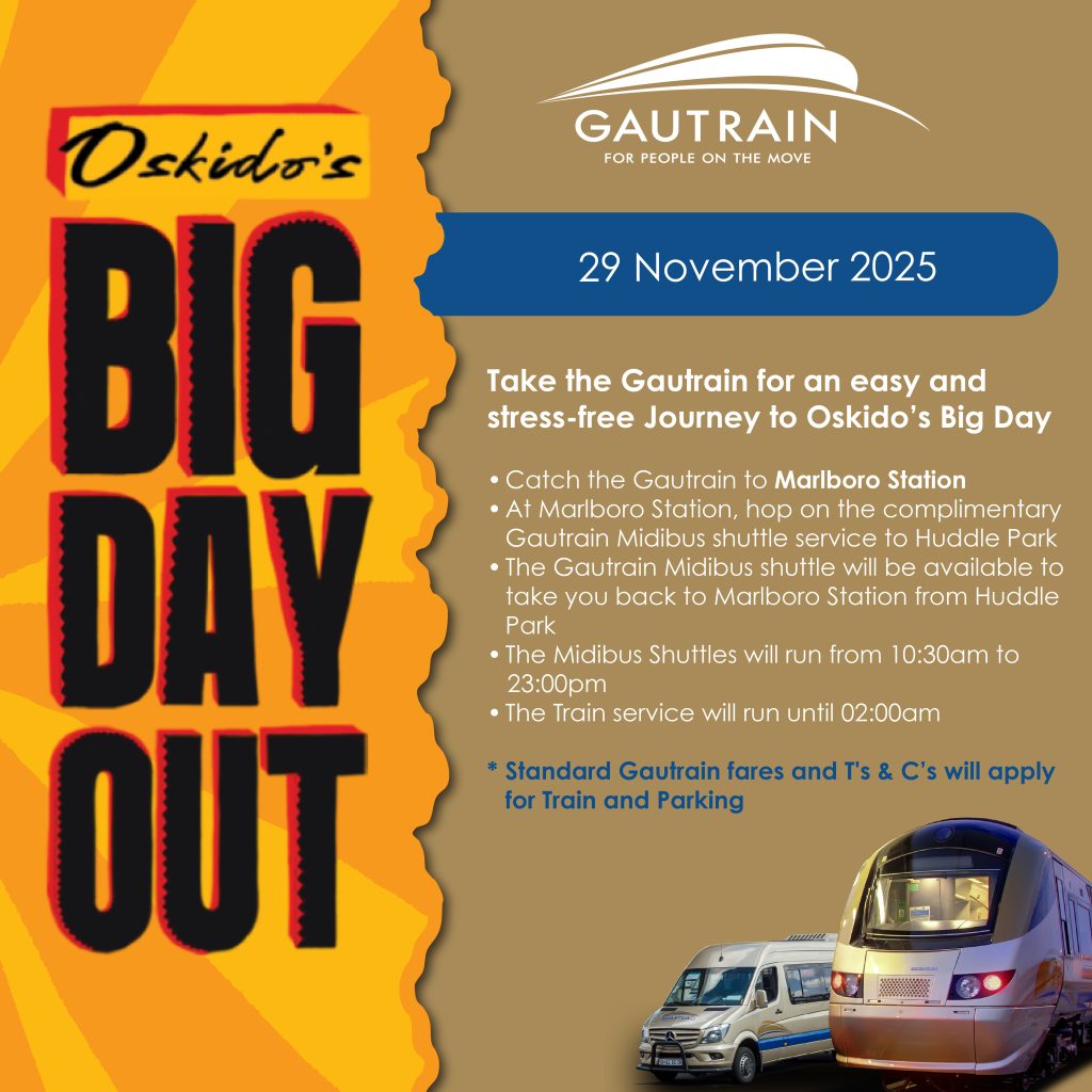 Plan your route, book your seat, and be part of Oskido’s Big Day Out at www.gautrain.co.za