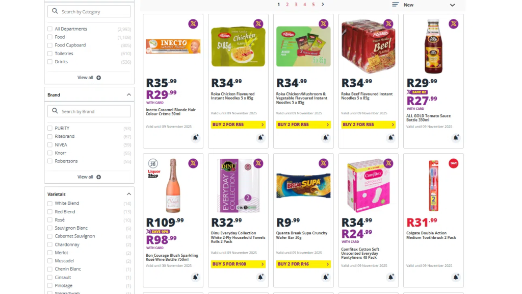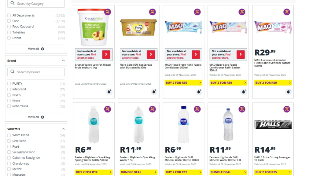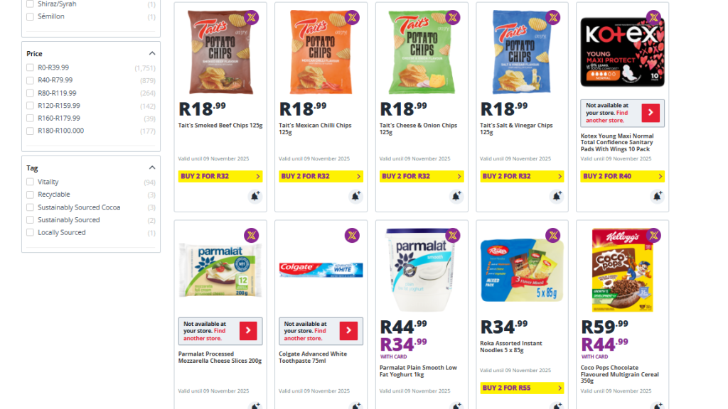 Multi-buy offers such as “4 for R100” or “Buy 2 for R55” provide excellent value. Stock up on essentials like tissue packs, sauces, or detergents.
